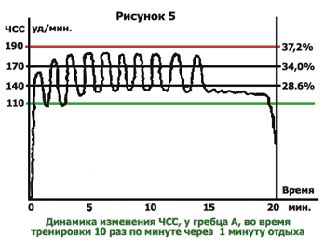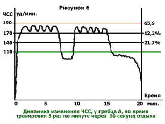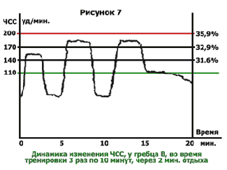 отдыха величена снижалась лиш на 8-10 ударов, по сравнению с рабочей ЧСС.
